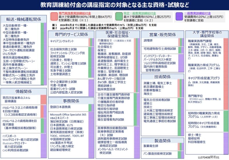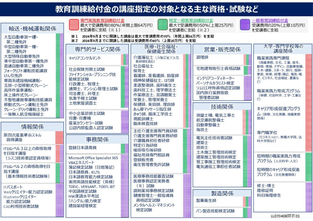 出典:厚生労働省 教育訓練給付制度