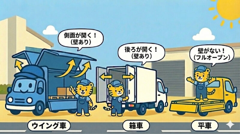 【図解あり】ウイング車・箱車・平車の構造の違いを分かりやすく解説