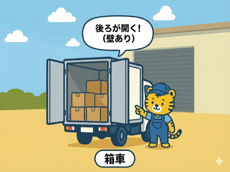 箱車と見た目は似ていますが、荷台の作りや開閉方法が大きく異なります。