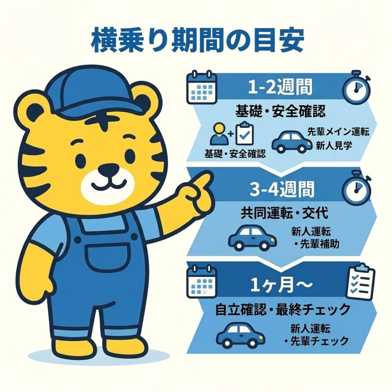 • 横乗り期間は車種・職種によって3日〜2ヶ月ほどが目安